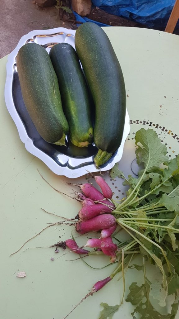Pas de chance cette année pour les tomates :(, le mildiou aura eu raison d’elles. Mais les courgettes sont des monstres et sans parler des radis !